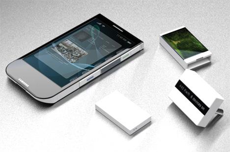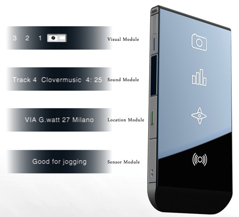 Что же делает этот прототип таким особенным? Прежде всего, это необычный четырехмодульный интерфейс, который позволит легко производить модернизацию аппарата, чтобы получить в нем новейший набор технологий. Таким образом, покупатель получает не «моментальный снимок» актуальных на момент приобретения функций аппарата, а возможность оснащать свой телефон новыми технологиями по мере их появления. Вышеупомянутые четыре модуля («видение», «расположение», «звук» и «сенсор») могут выпускаться как Samsung, так и независимыми производителями.
